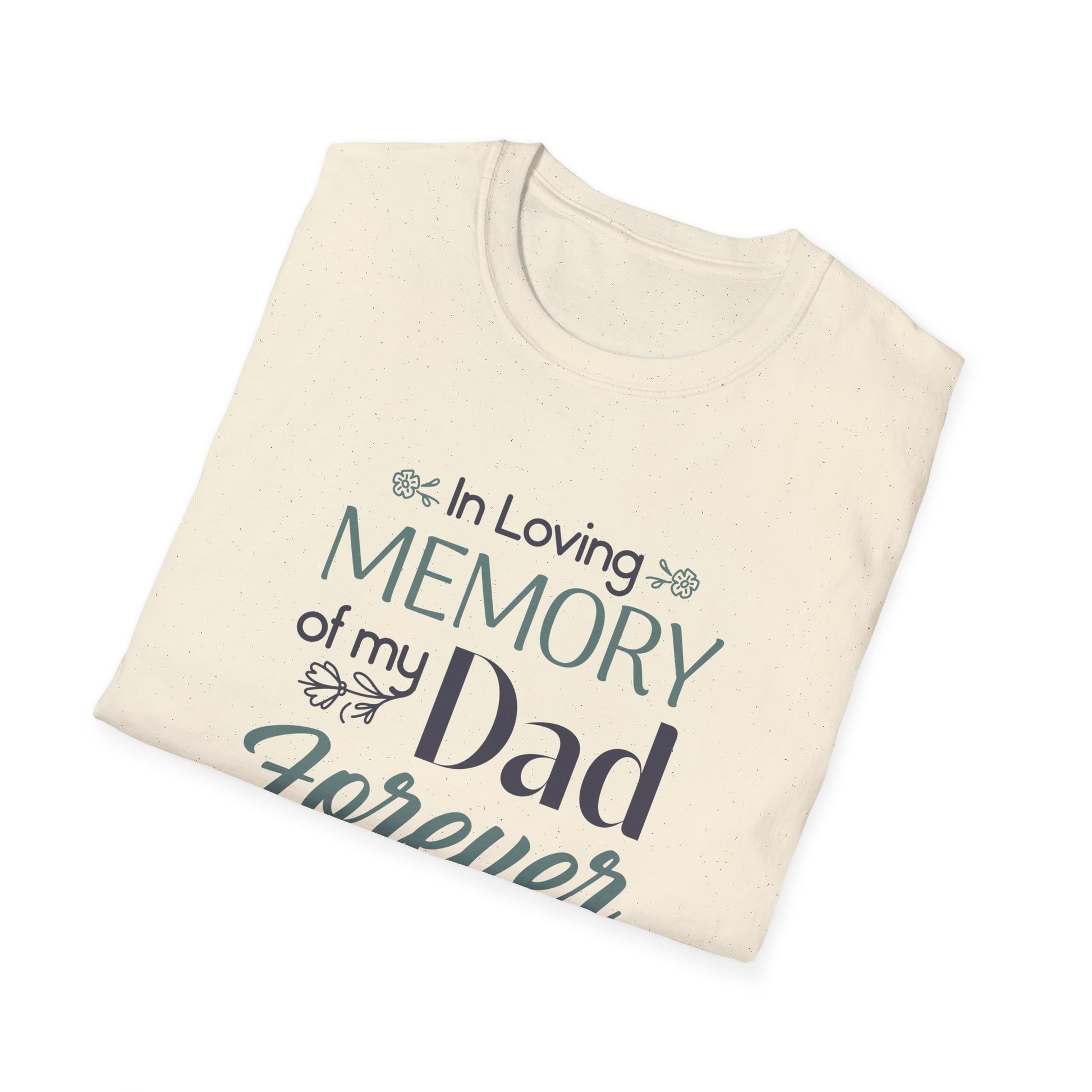 A soft, graceful tee designed to hold a quiet tribute close to the chest. This lightweight cotton shirt carries a simple, heartfelt memorial design that reads “In Loving Memory of my Dad — Forever in my heart,” printed with gentle contrast so the message feels tender, not loud. Wear it on days of remembrance, to family gatherings, or when you want a calm, personal reminder of someone you miss. The crew neck and classic fit keep the silhouette familiar and easy to layer with a cardigan or jacket. It’s made to be comfortable enough for everyday wear while honoring a meaningful memory.